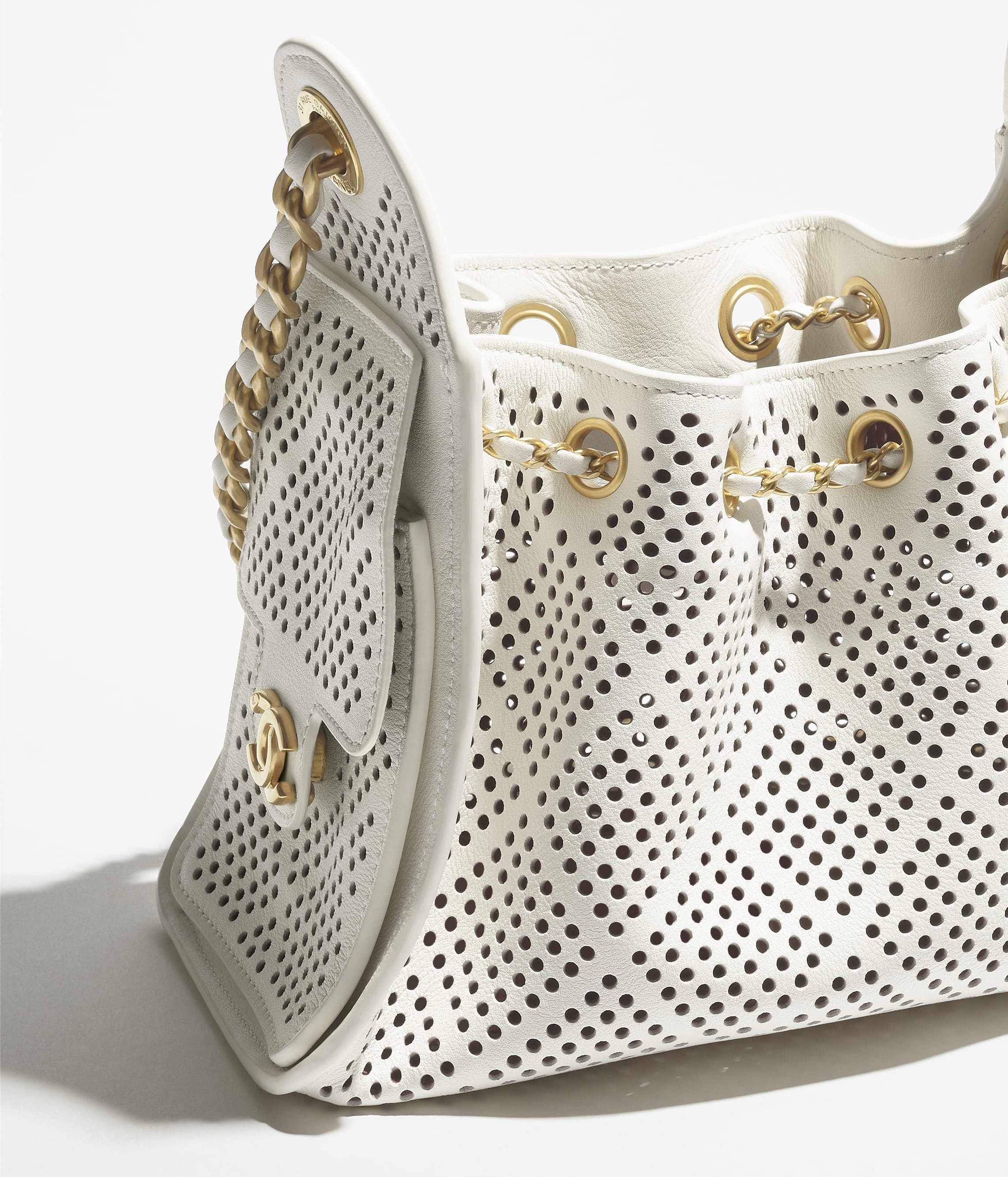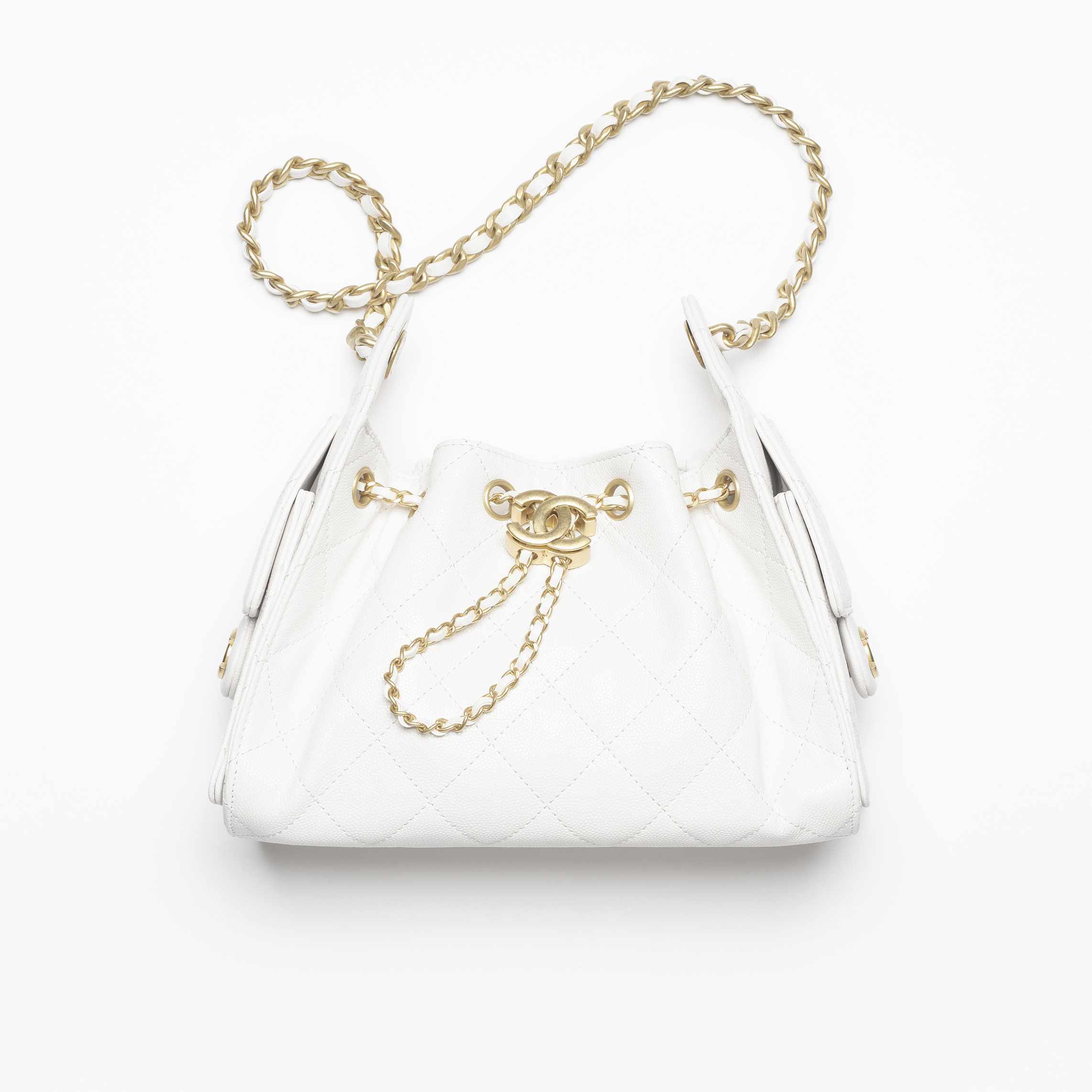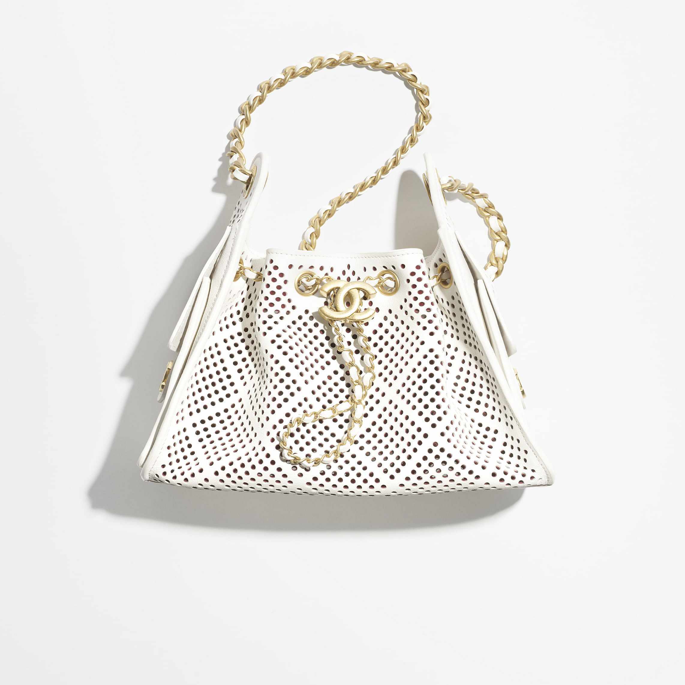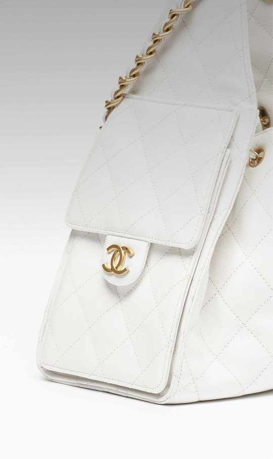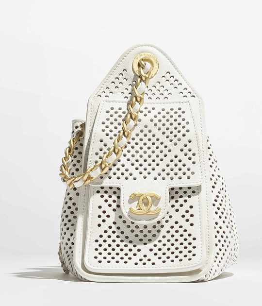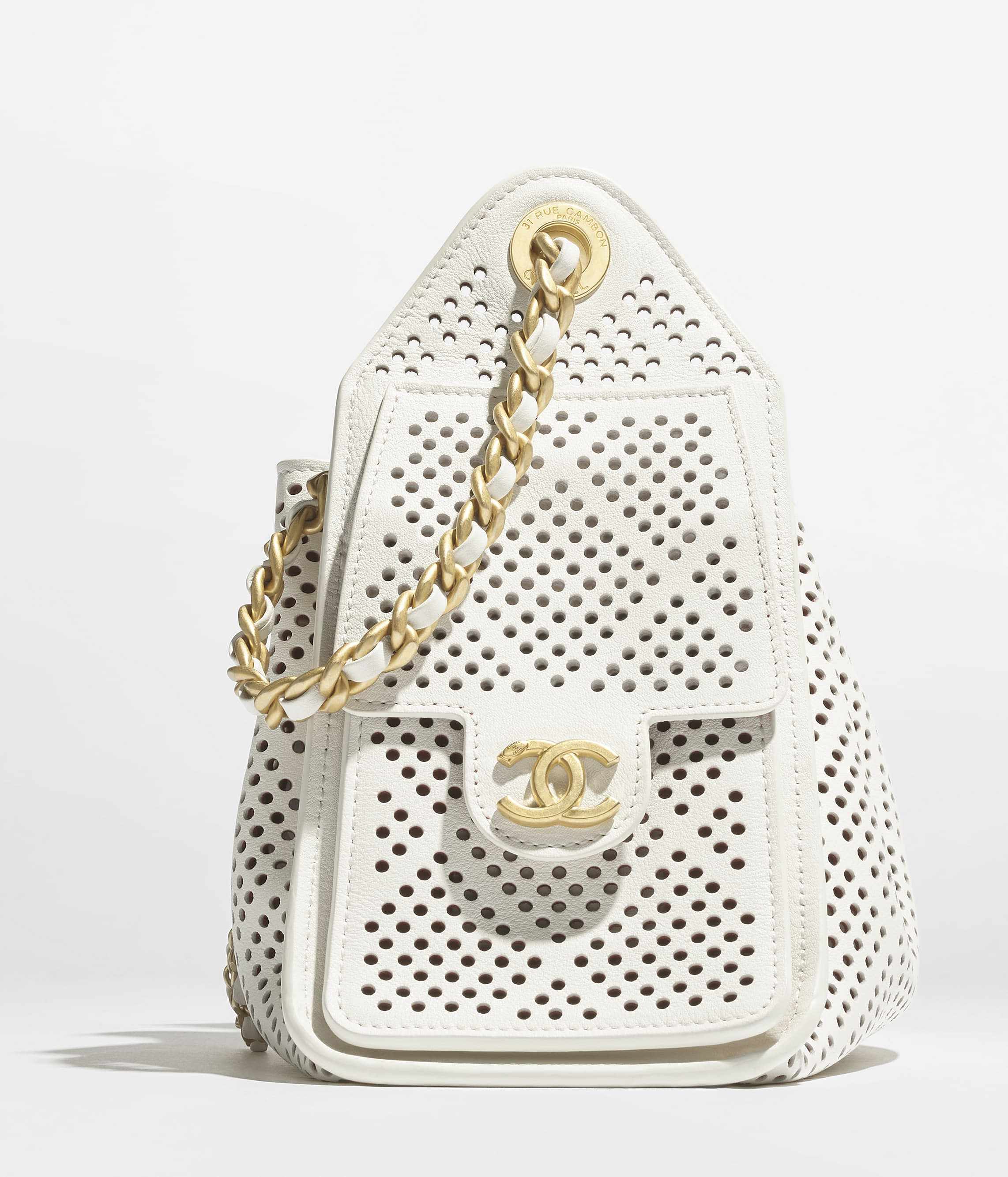 这组 Chanel 25 手袋通过镂孔工艺在小牛皮上打造出错落有致的菱格图案,镂空设计让包包显得轻盈且富有呼吸感,迷你尺寸渲染清爽的纯白色,小号采用充满自然气息的深棕色。