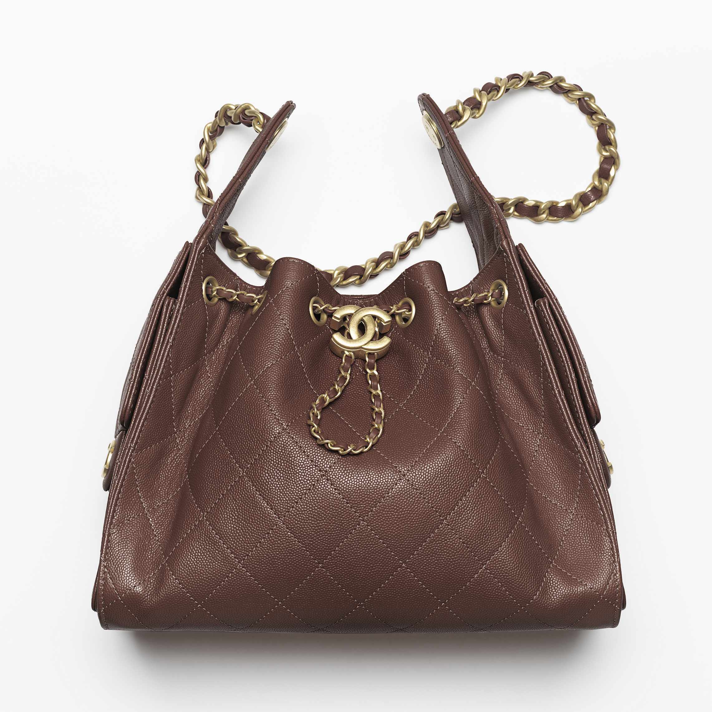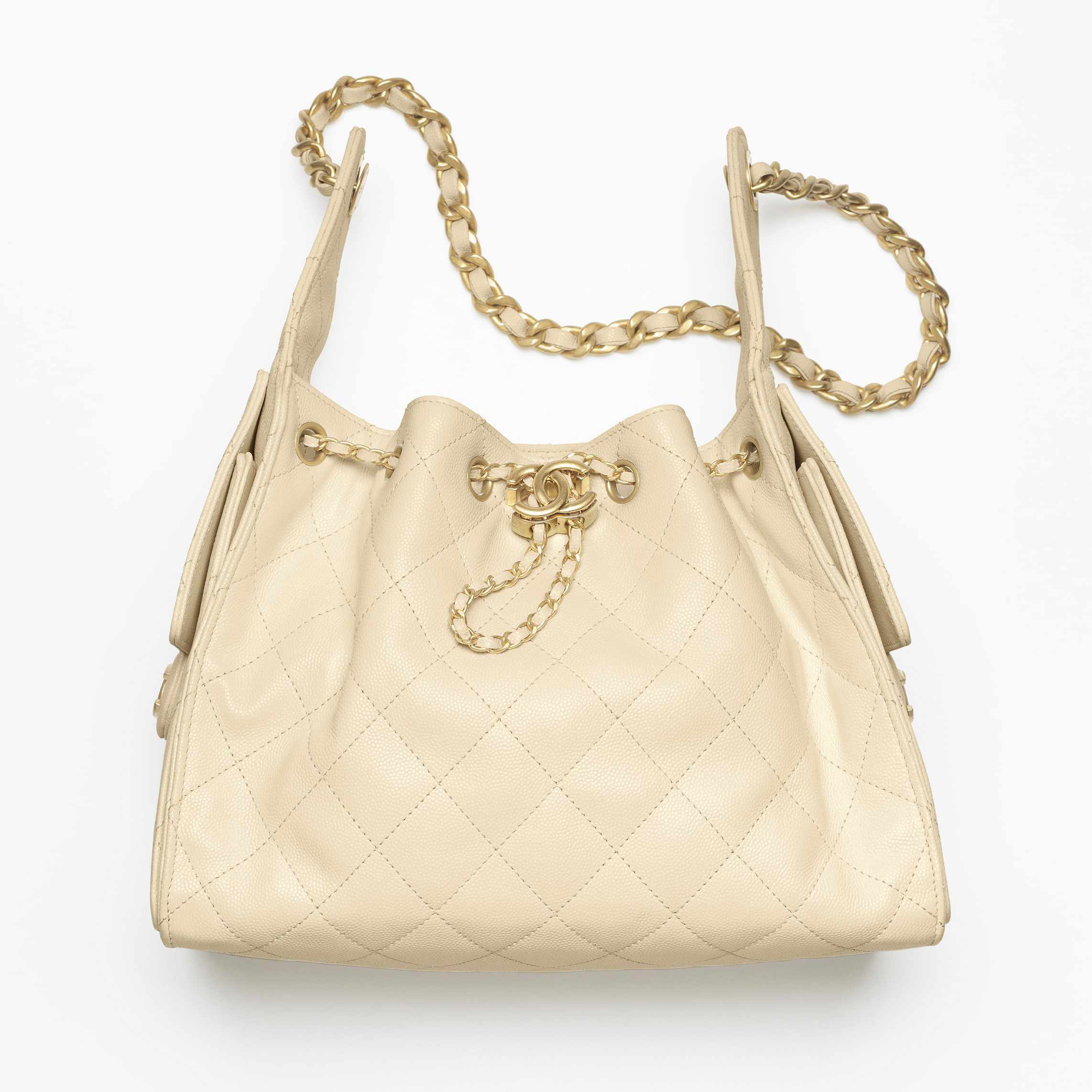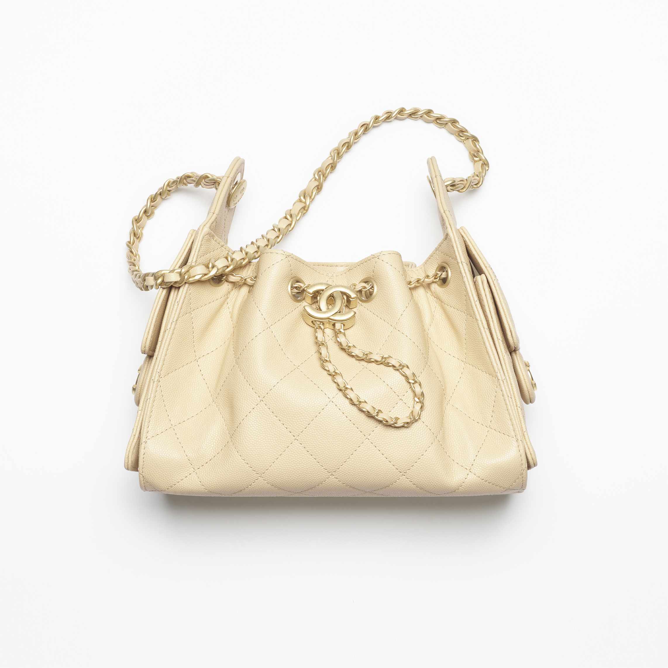 Chanel 25 手袋于2025年首次亮相,承袭菱格纹绗缝皮革、皮穿链和双C标志等品牌经典符号,采用 hobo 流浪包廓形搭配侧面多功能口袋设计,集实用与随性优雅于一身。