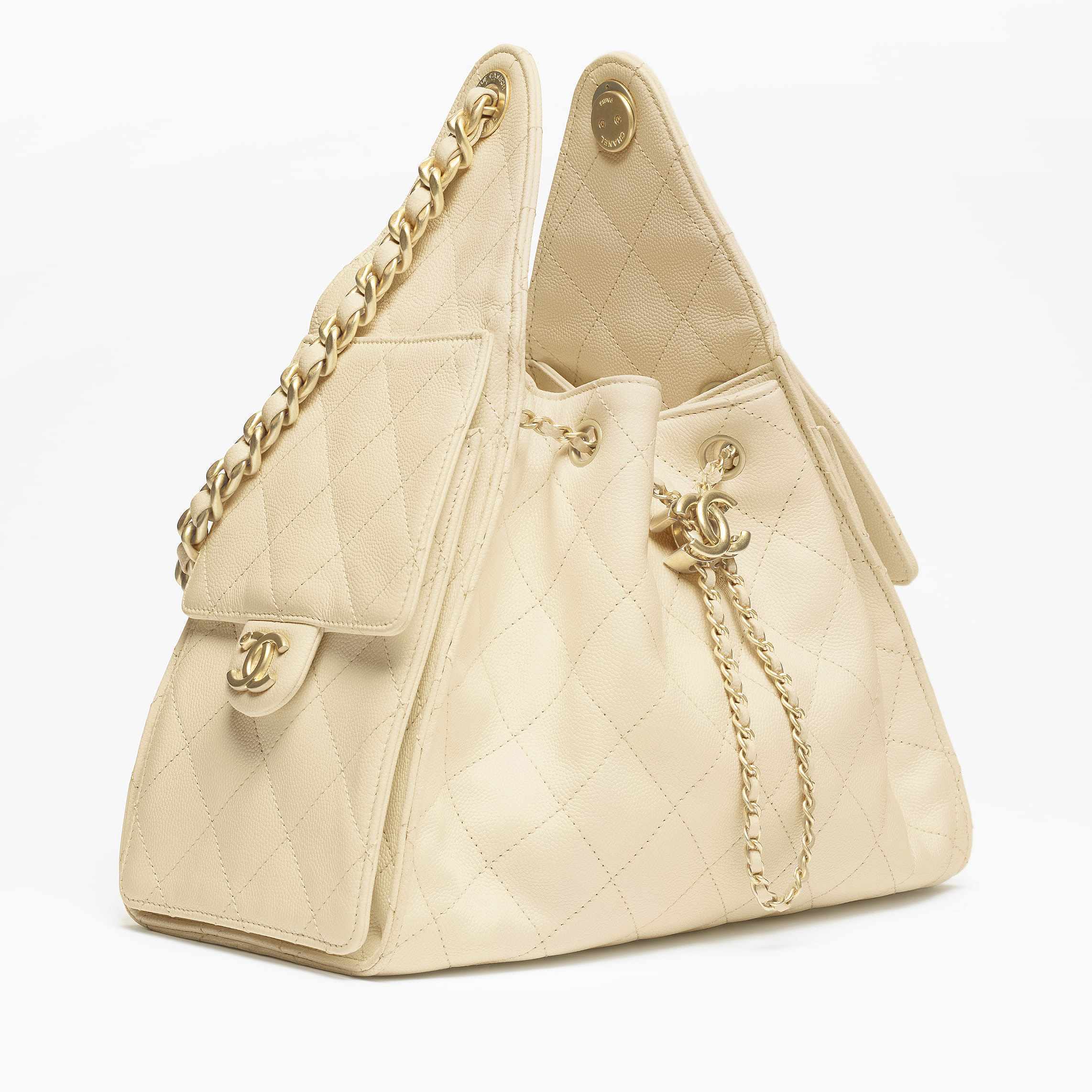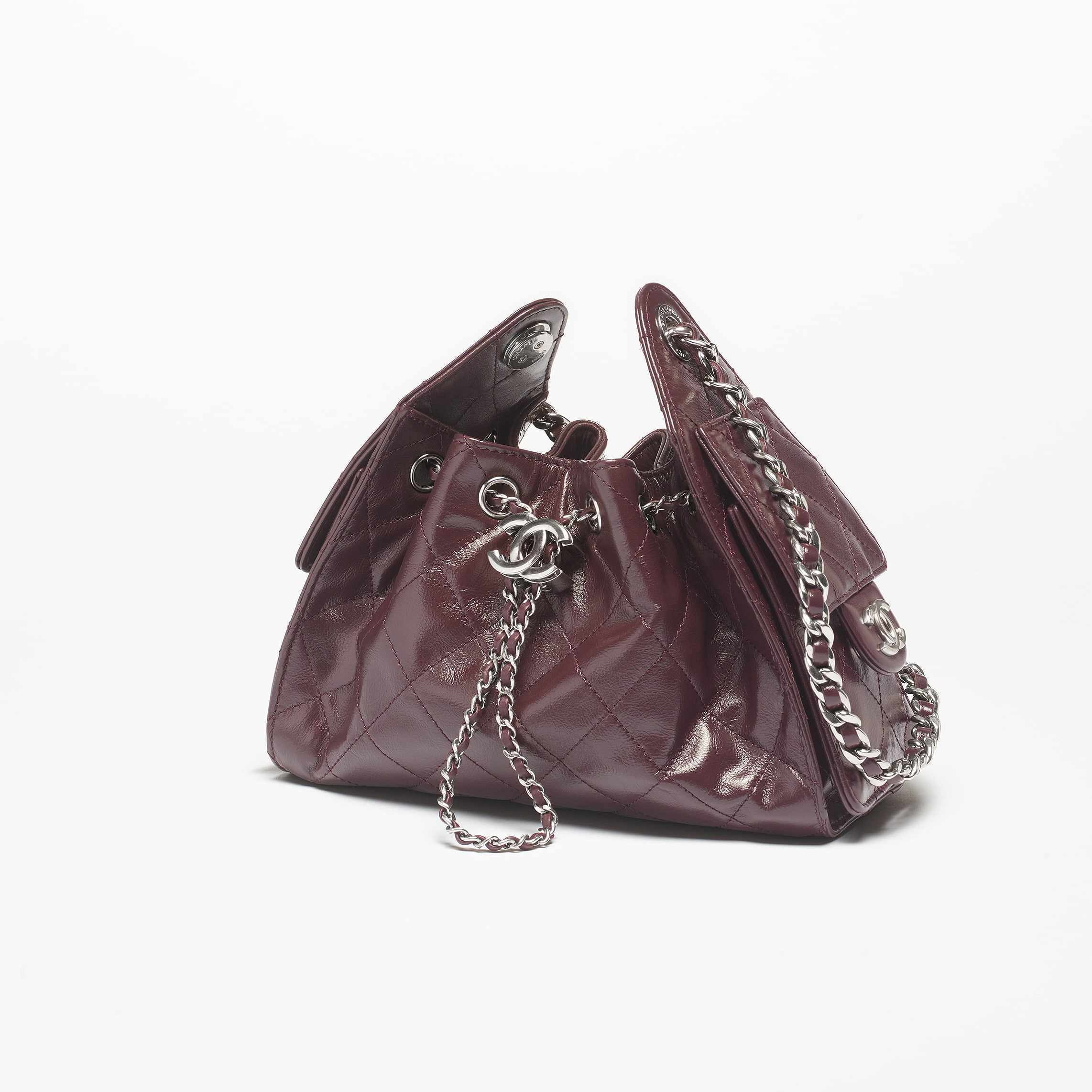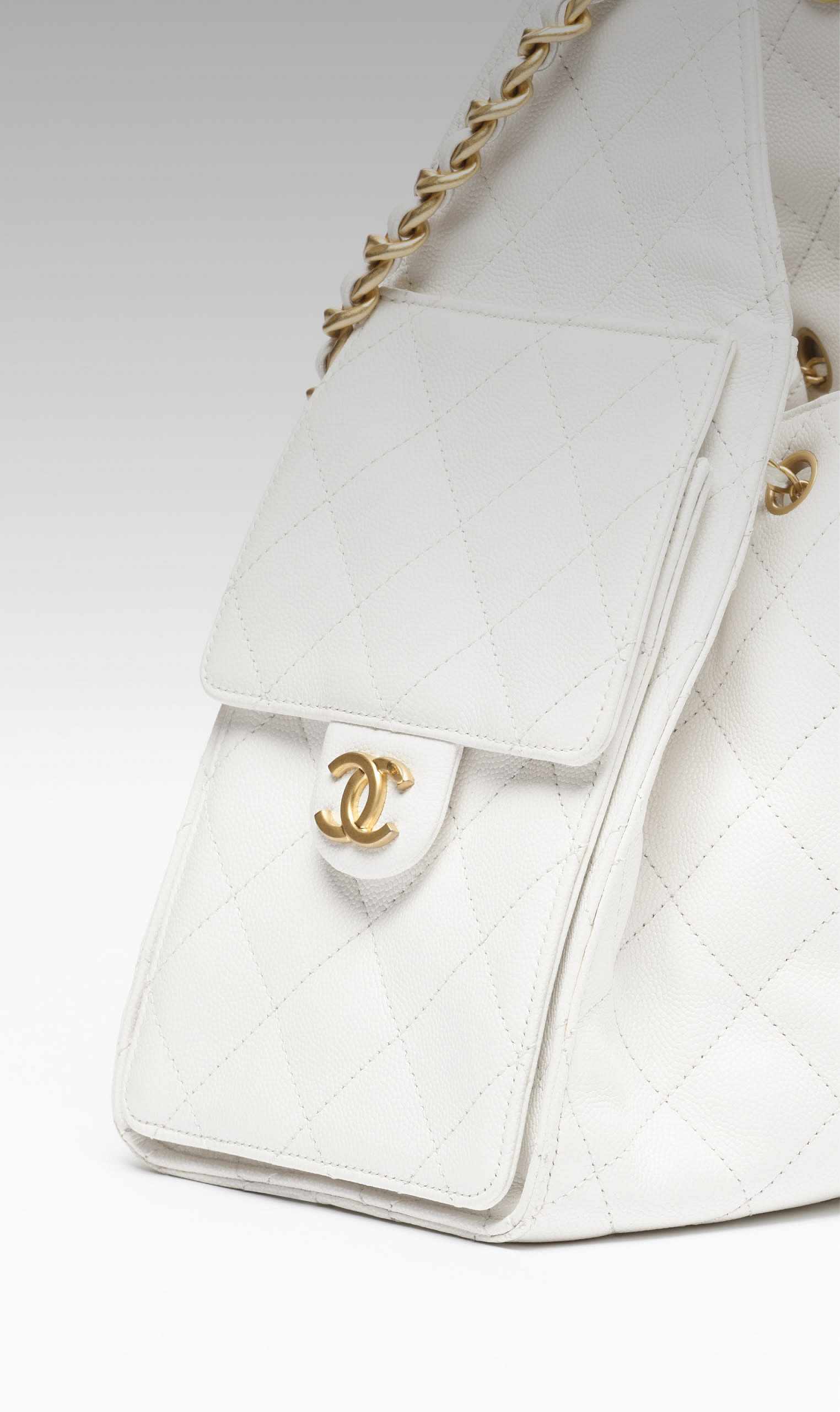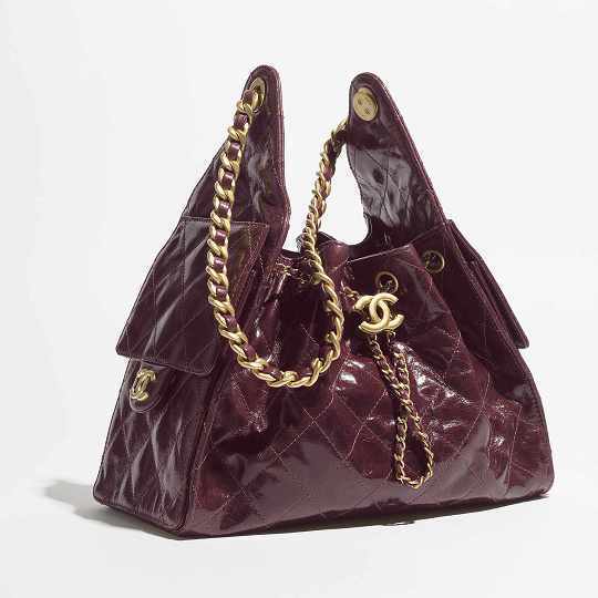Chanel 25 手袋于2025年首次亮相,承袭菱格纹绗缝皮革、皮穿链和双C标志等品牌经典符号,采用 hobo 流浪包廓形搭配侧面多功能口袋设计,集实用与随性优雅于一身。