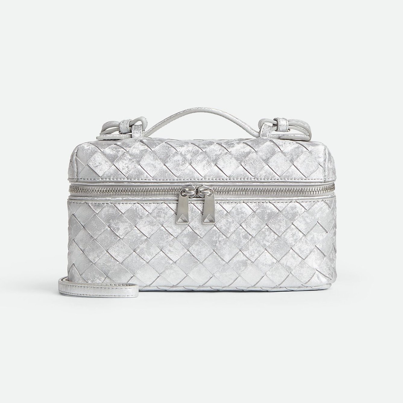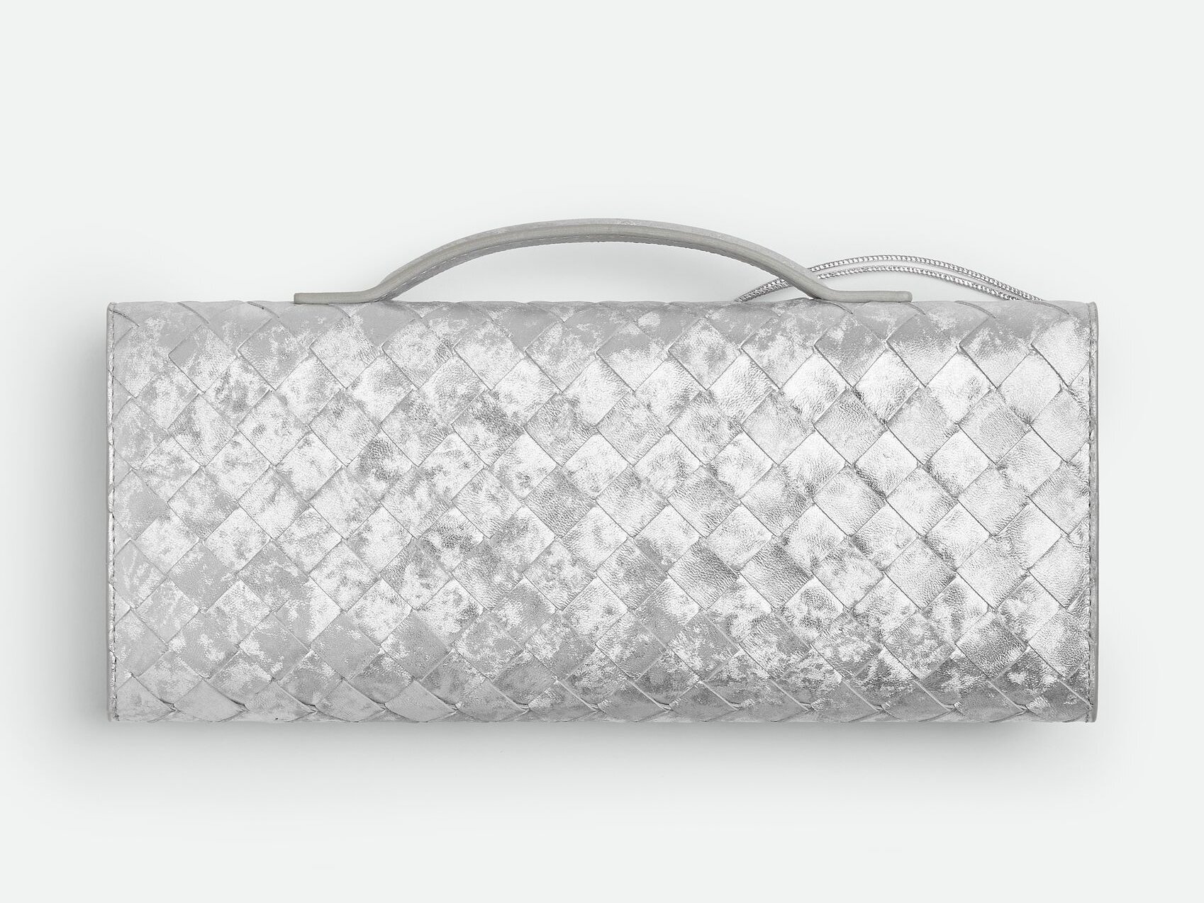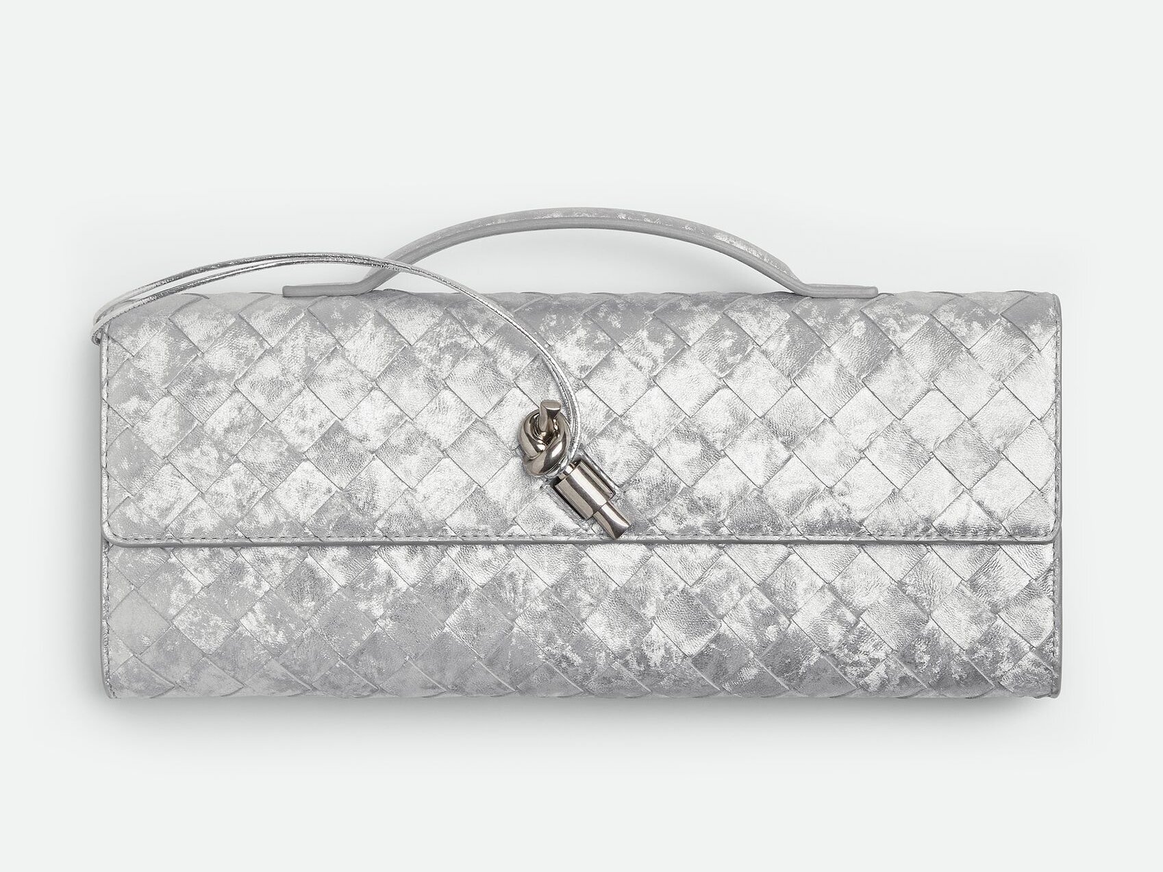 银色系包包人联想到银装素裹的雪季,和冬季氛围格外 Match。新作采用丝缎质感层压小羊皮为主材质,让本身就柔嫩的小羊皮更添温润细腻的缎面质感,采用品牌标志性的 Intrecciato 编织工艺制作,包包仿佛撒上了一层闪烁的银霜,显得精致又优雅。
