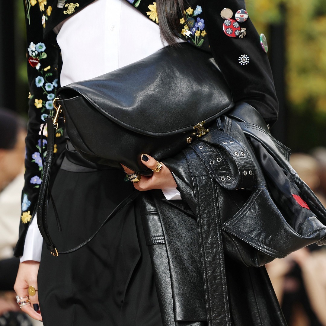 新款 Besace Triomphe 手袋采用柔软皮革塑造半月廓形,经典 Triomphe 手袋推出 Top Handle 手拎包款式,金属凯旋徽标依然是视觉焦点。