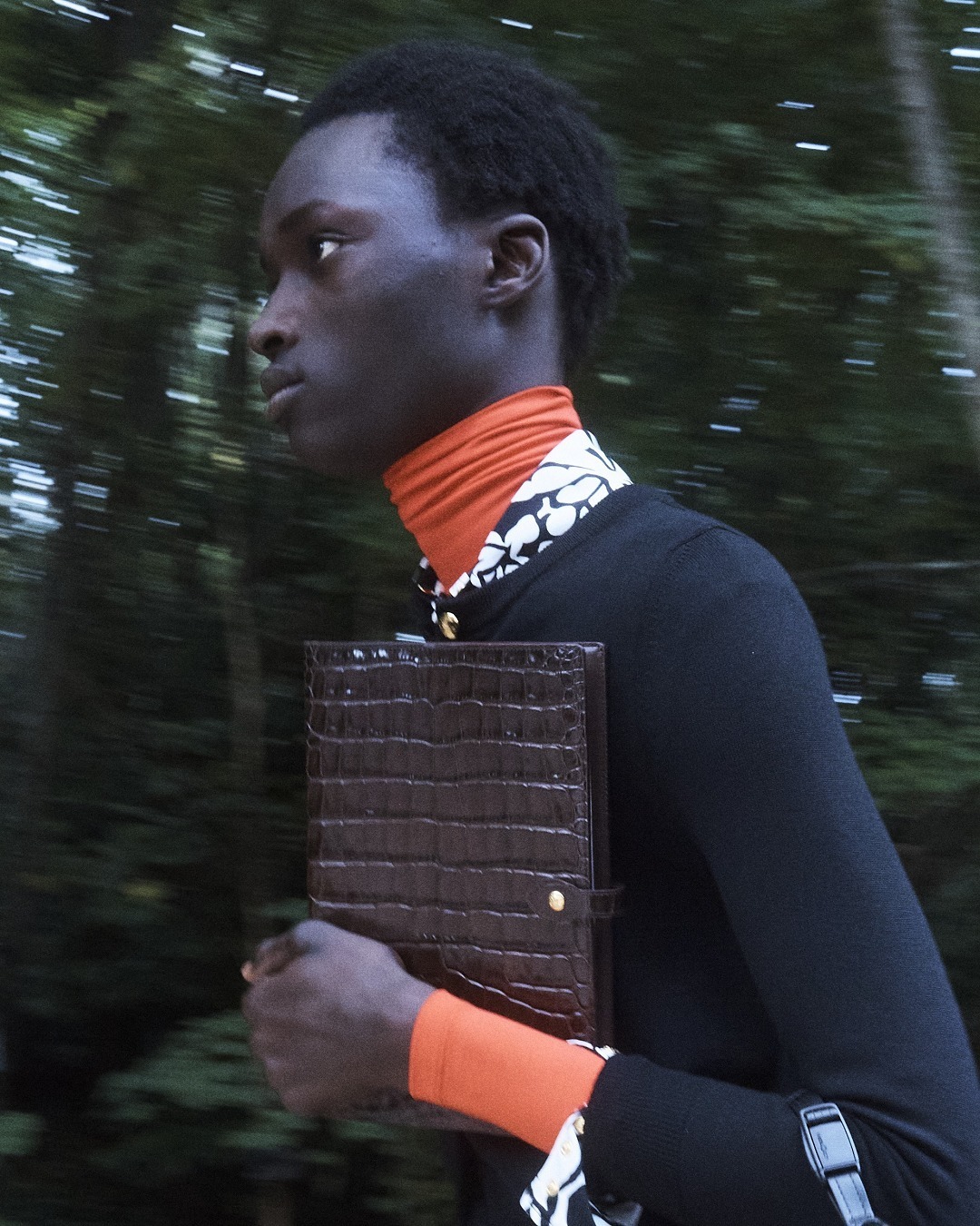 新款笔记本皮套也是本季秀场一大亮点,采用矜贵的鳄鱼皮或纯色皮革制成,设计师将亮丽的印花丝巾装饰在笔记本扣带上,为我们提供了新的穿搭思路。