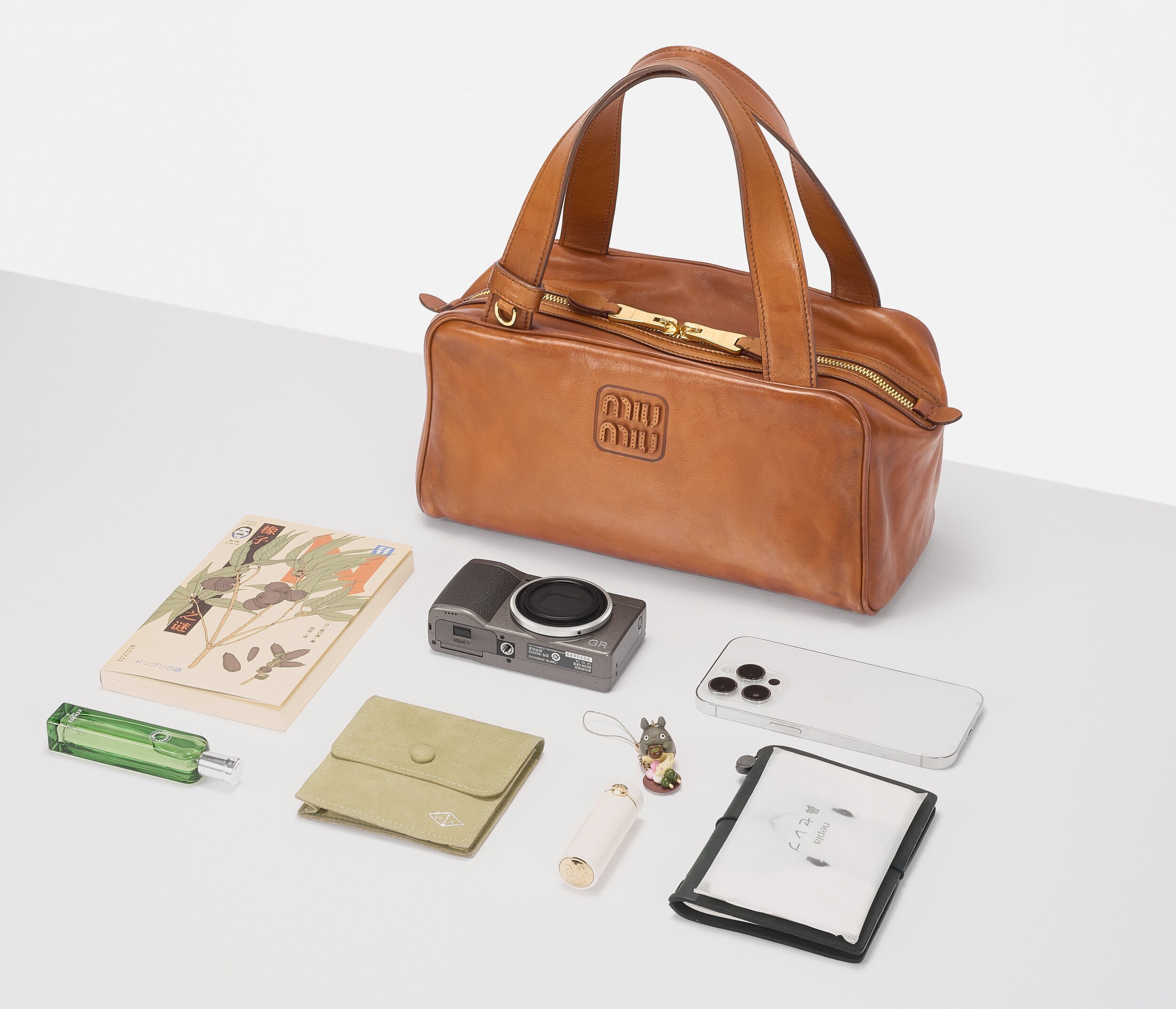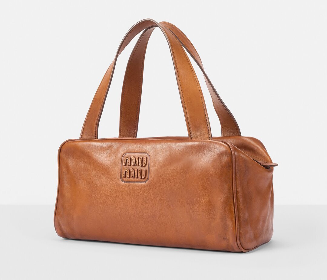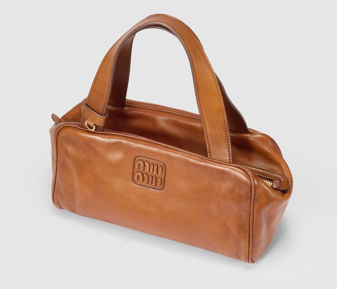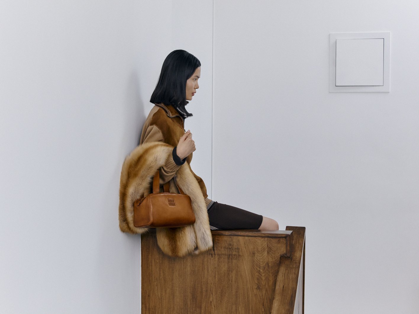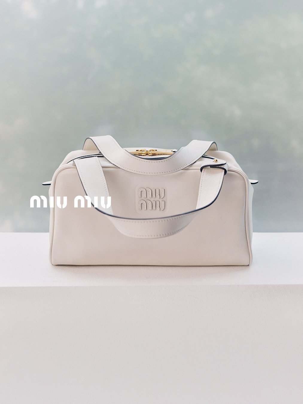 这款手袋发布于 Miu Miu 2025秋冬系列时装秀,本季作品以「女性气质」(Femininities)为题,创意总监 Miuccia Prada 藉由时装语言对女性气质的定义展开思辨。