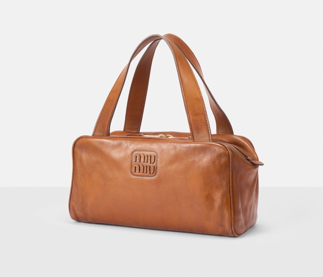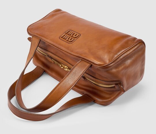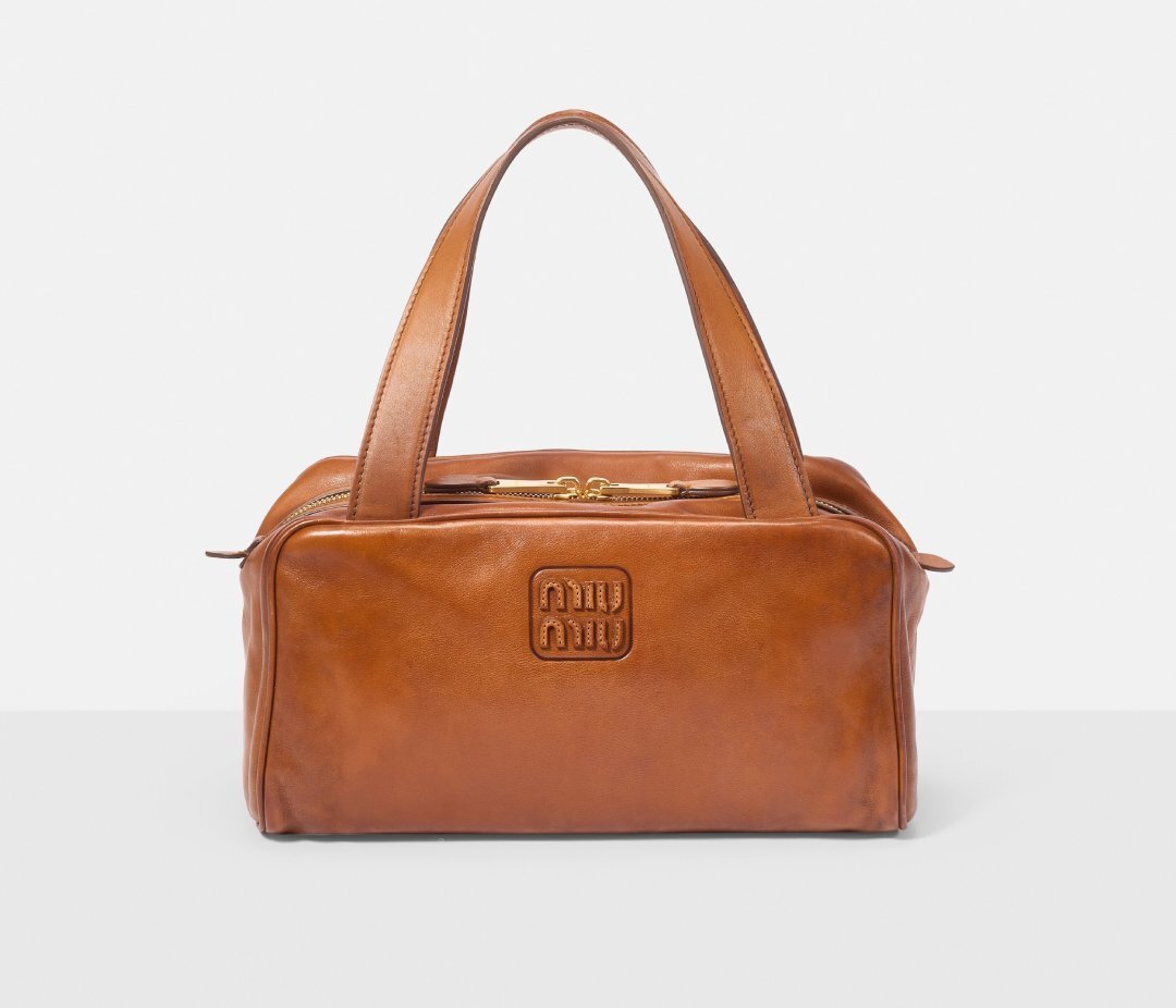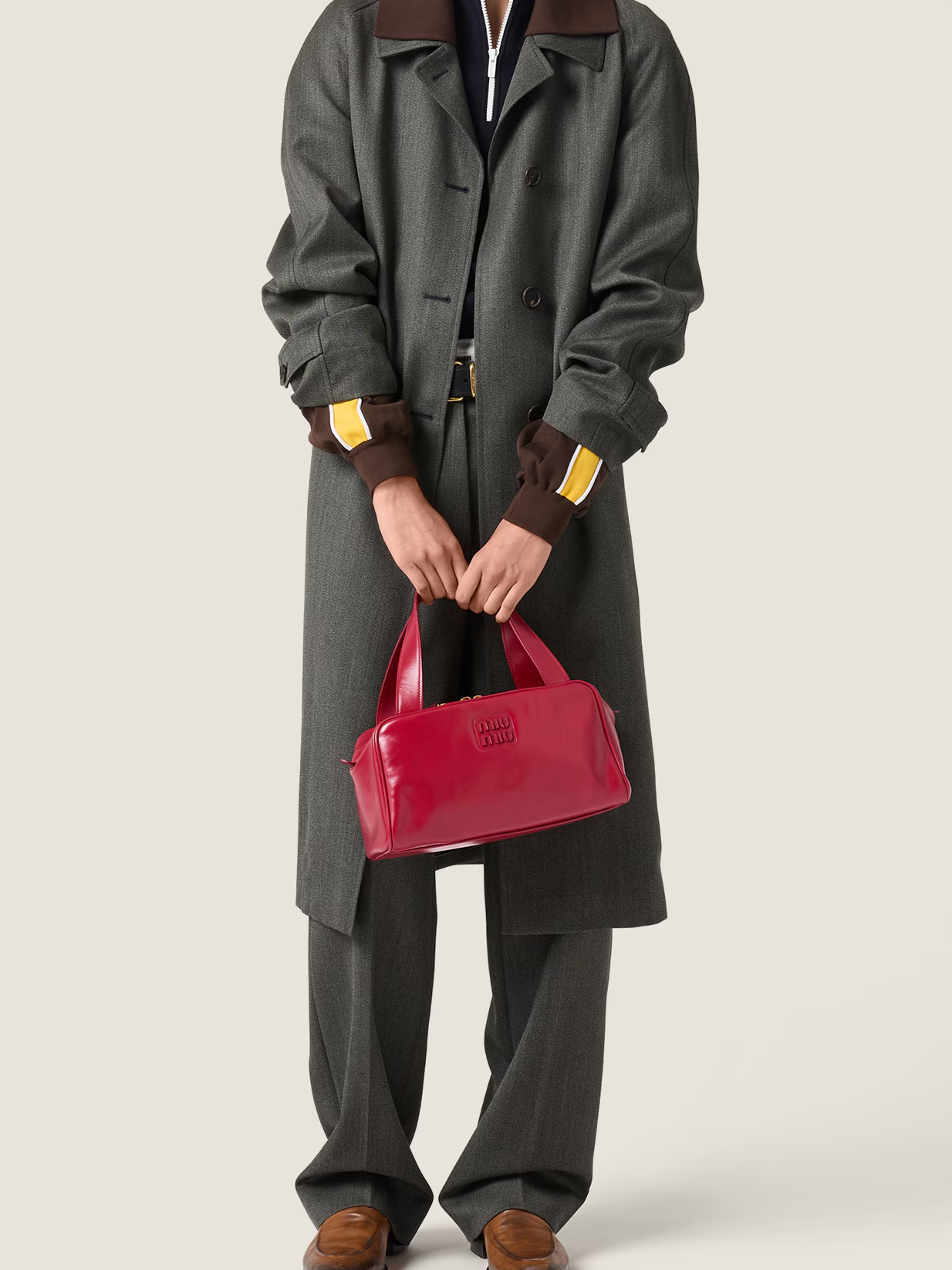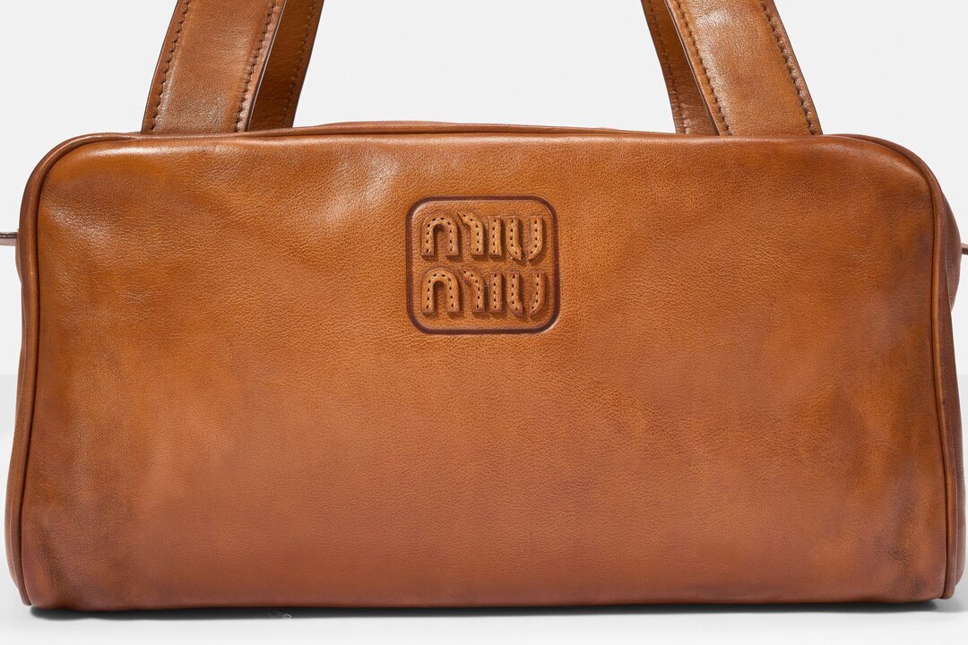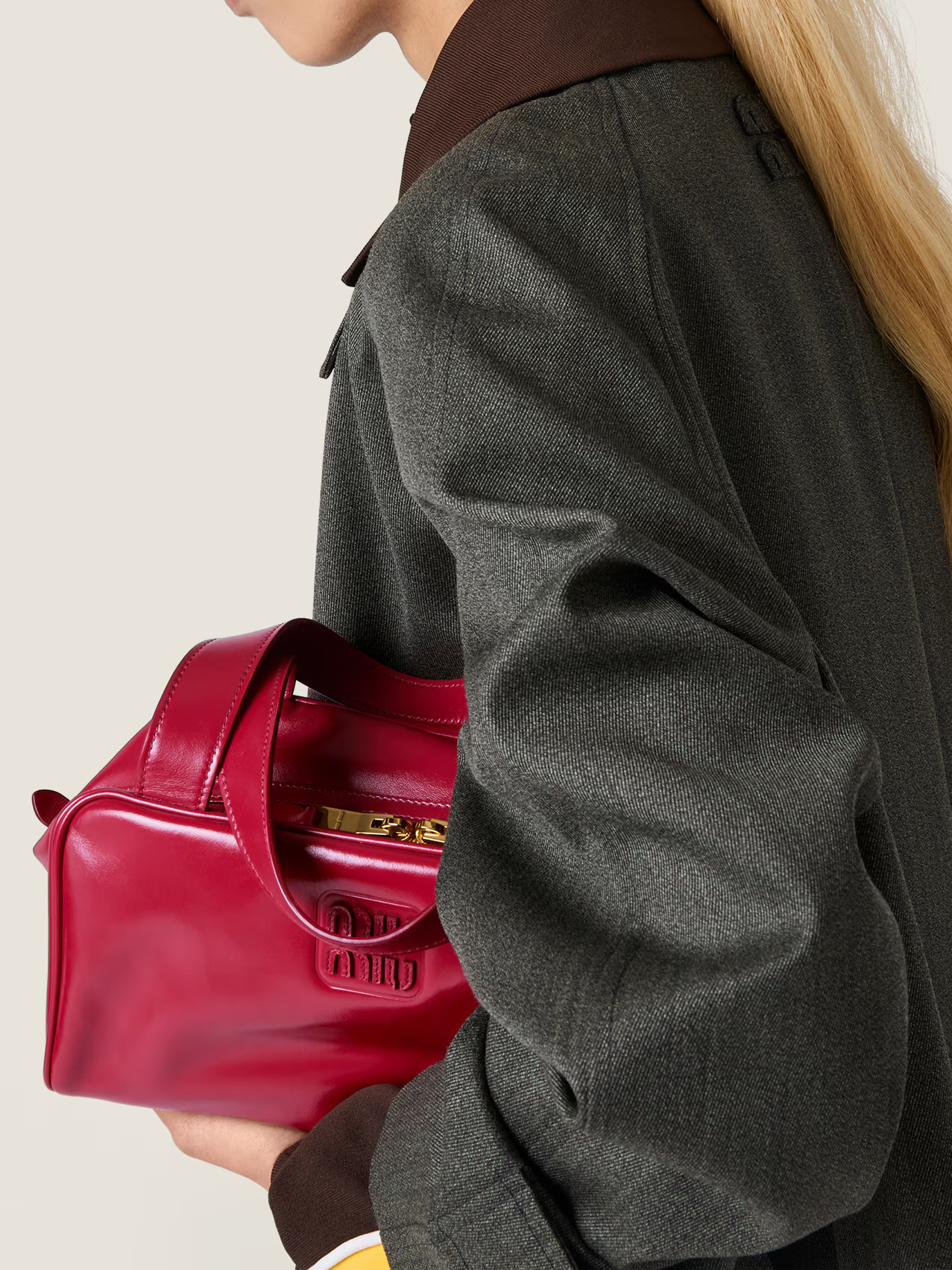 这款手袋发布于 Miu Miu 2025秋冬系列时装秀,本季作品以「女性气质」(Femininities)为题,创意总监 Miuccia Prada 藉由时装语言对女性气质的定义展开思辨。