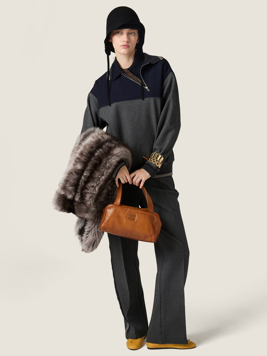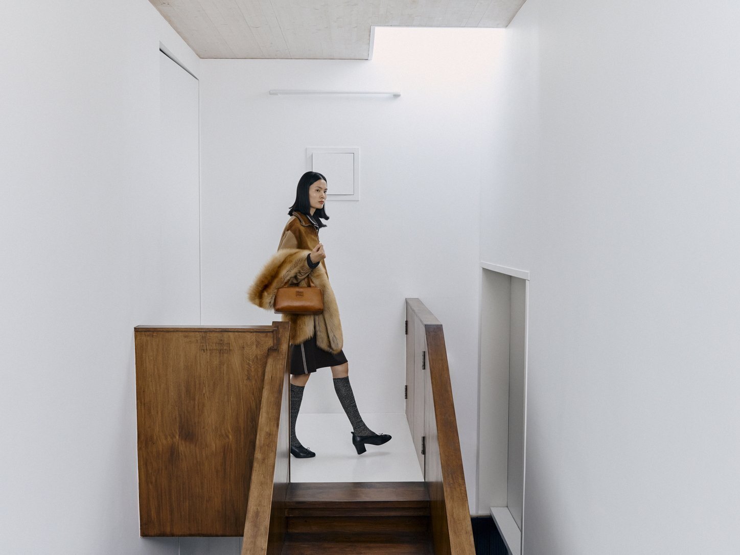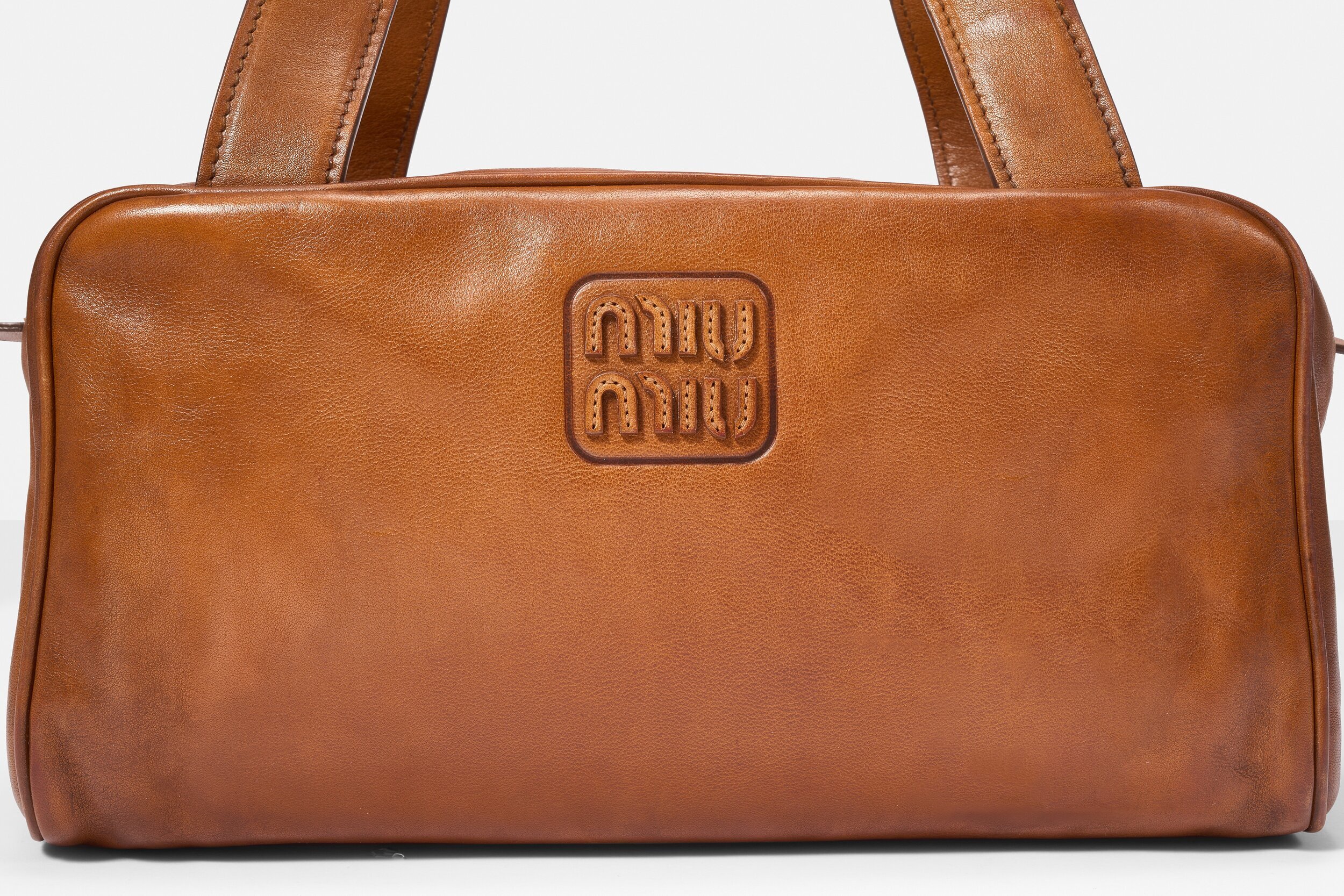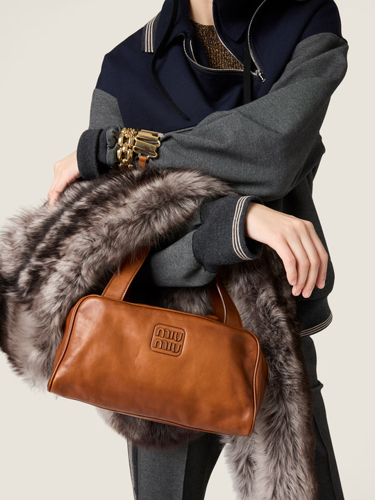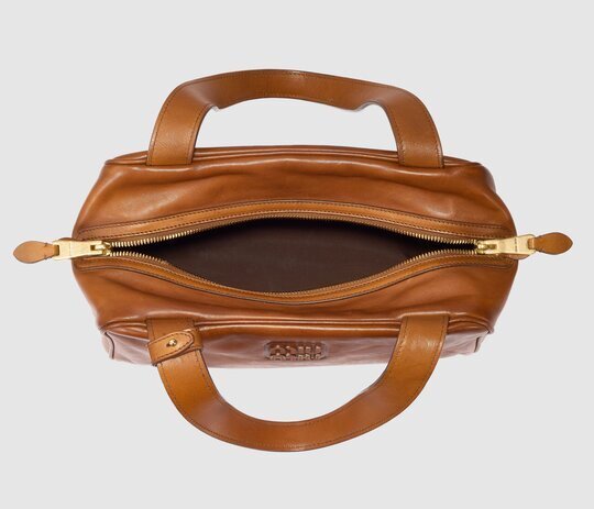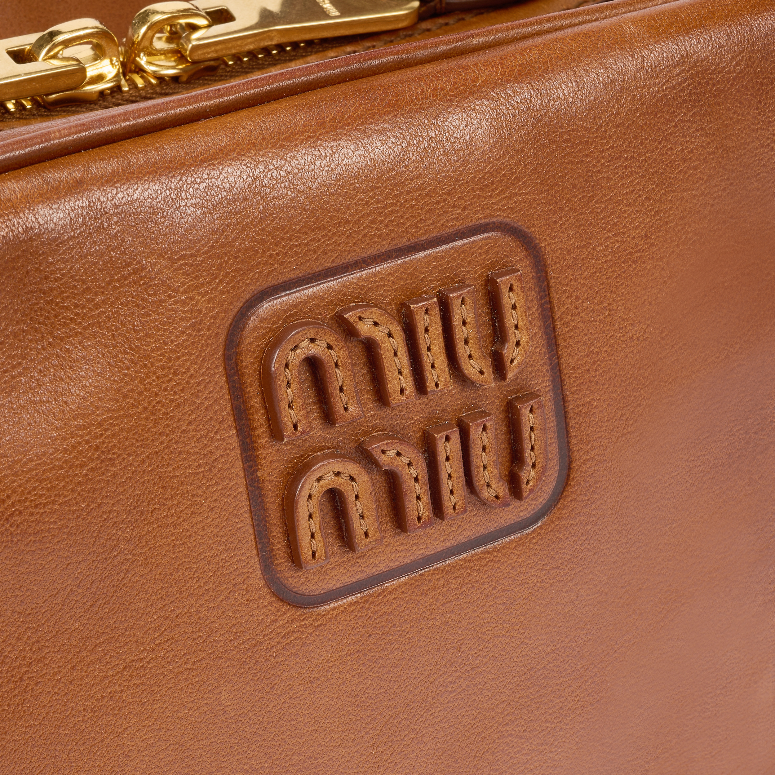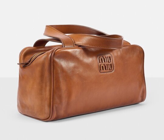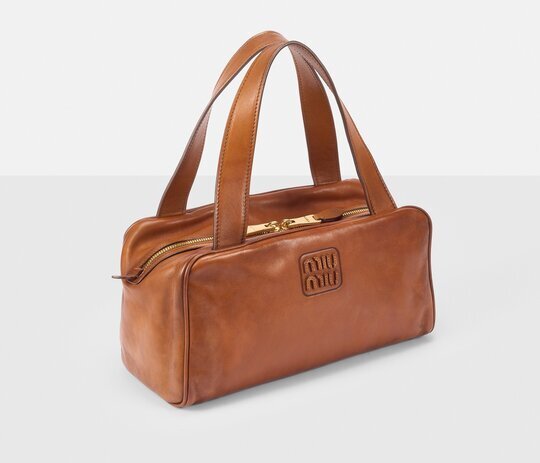 这款手袋发布于 Miu Miu 2025秋冬系列时装秀,本季作品以「女性气质」(Femininities)为题,创意总监 Miuccia Prada 藉由时装语言对女性气质的定义展开思辨。