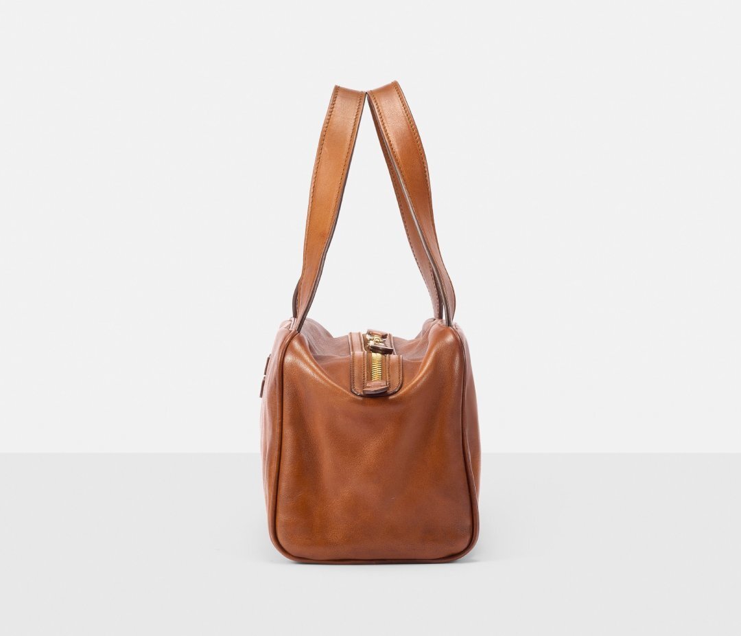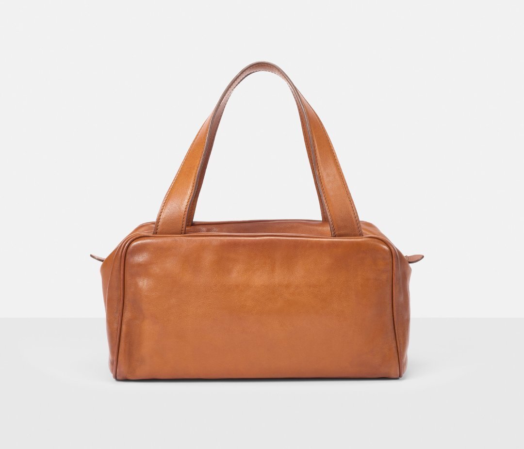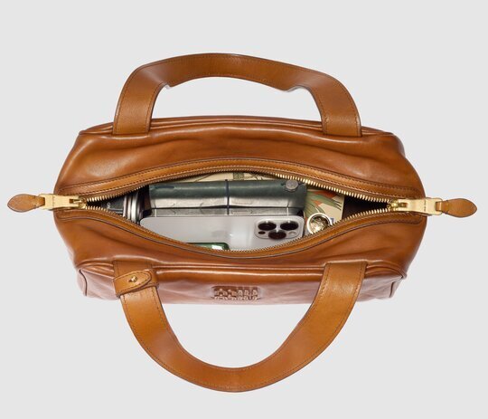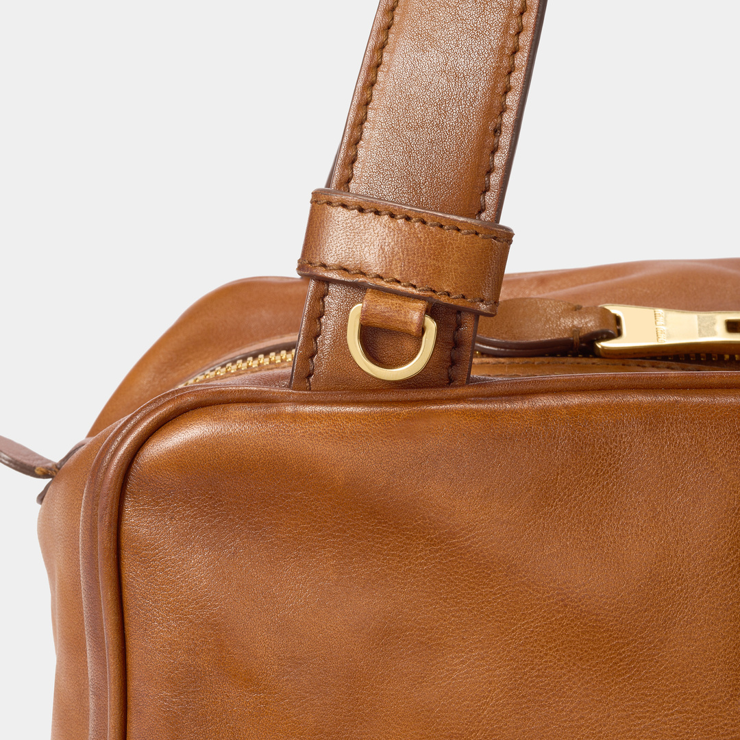 这款包包以「干邑色」(Cognac)为基调,来自法国白兰地的颜色,又增添一份复古怀旧韵味。设计师特别在皮革中融入深浅棕色,仿佛岁月留下的斑驳印迹。