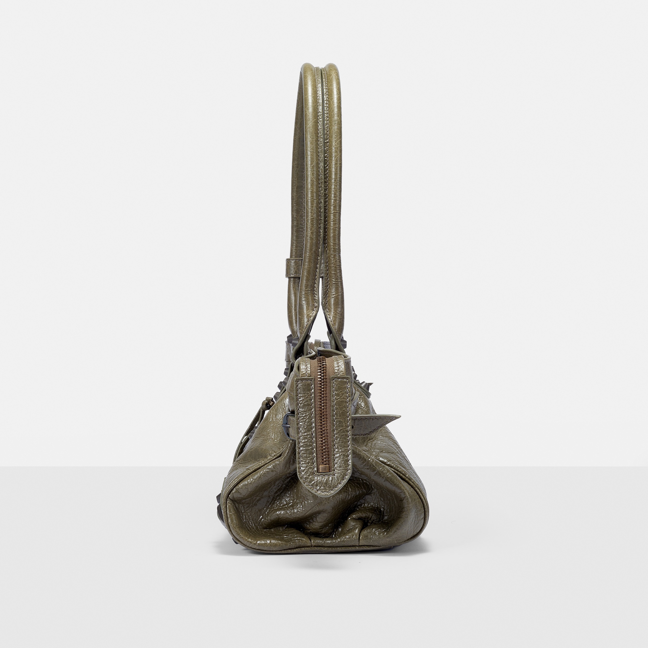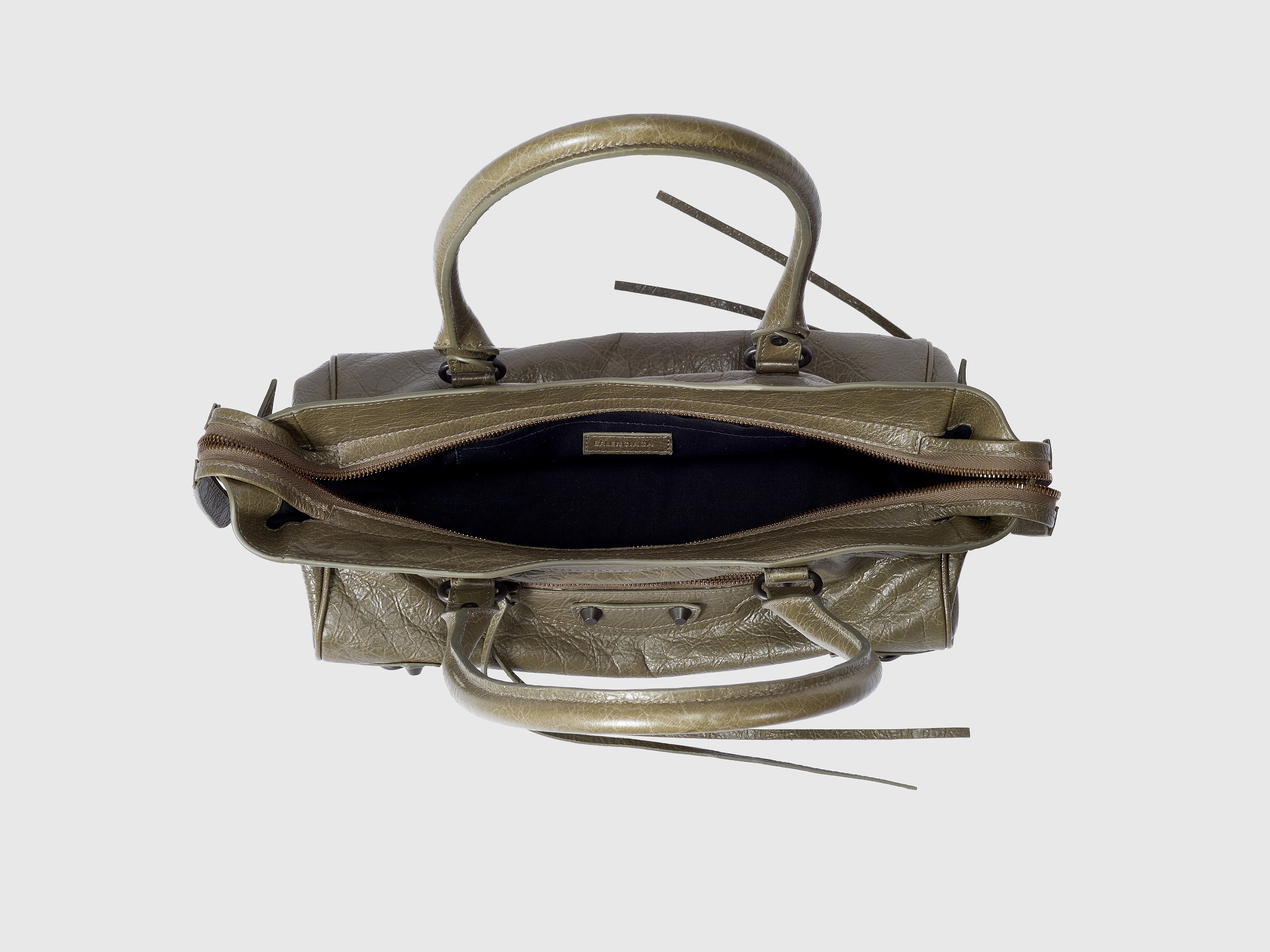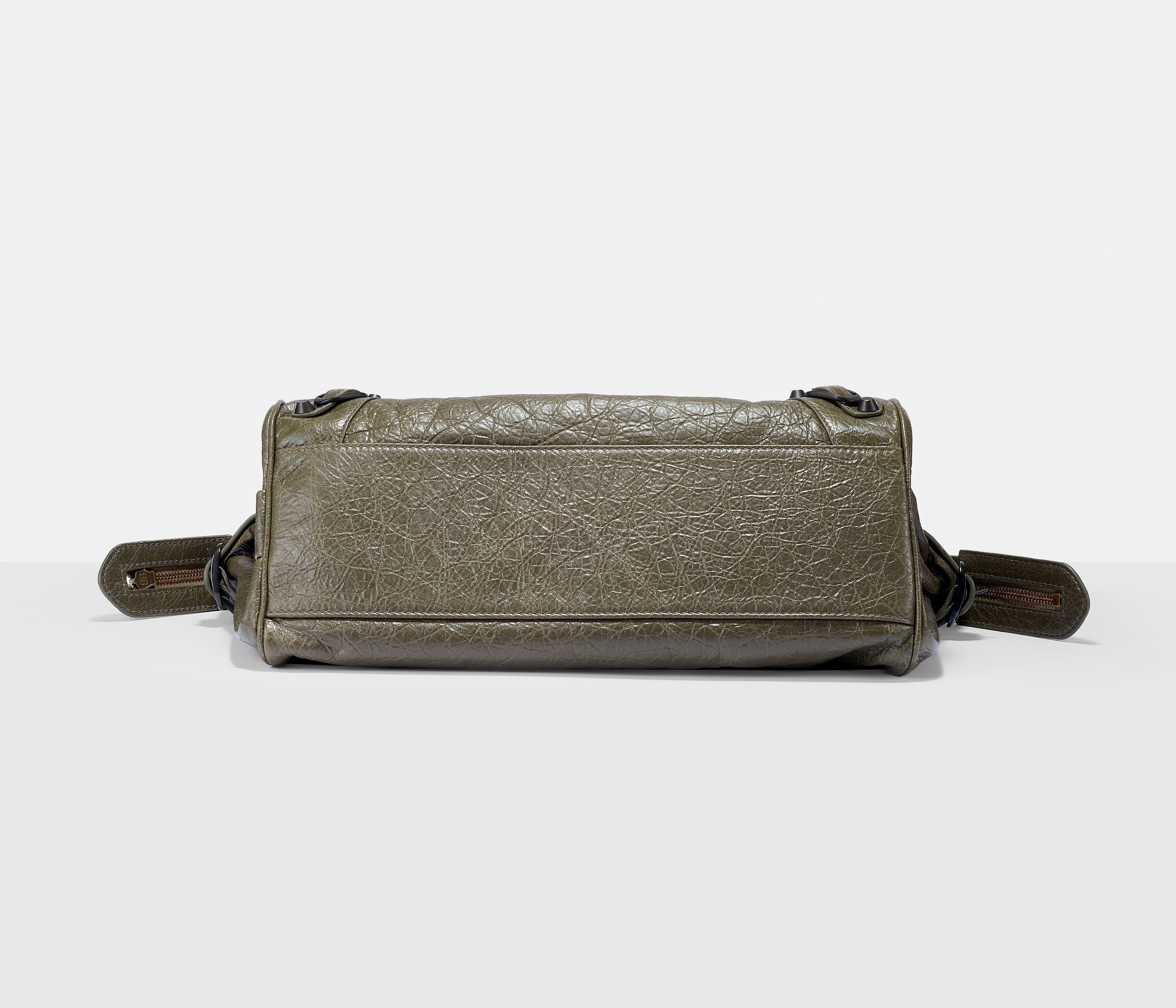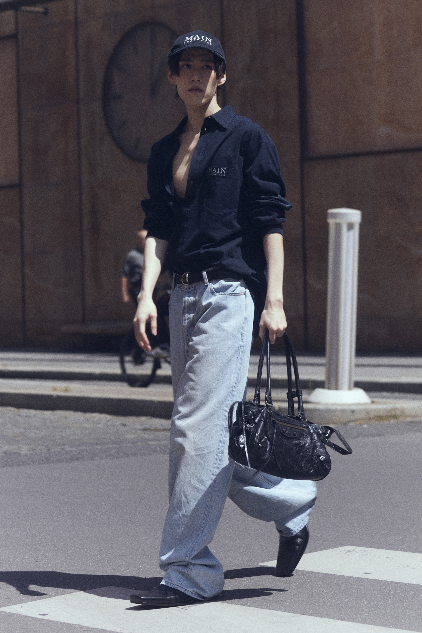 Le City East-West 横款手袋在 Balenciaga 冬季25系列中首次亮相,采用39.8cm长x17.7cm高x14.9cm宽的修长法棍包型搭配加长的皮革双手柄,重新调整的比例让包包能够随时切换手拎或肩背方式,契合繁忙的都市生活节奏。
