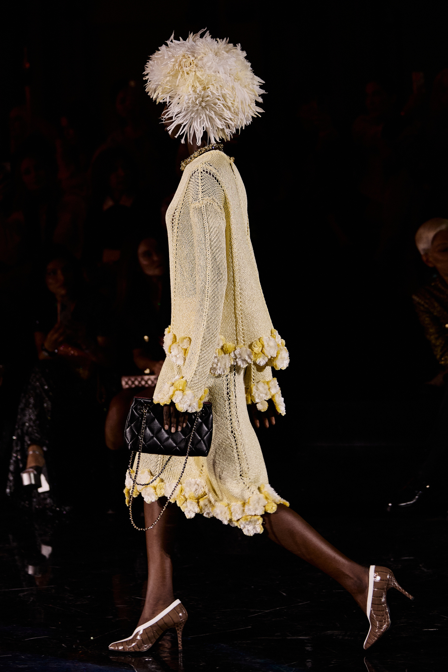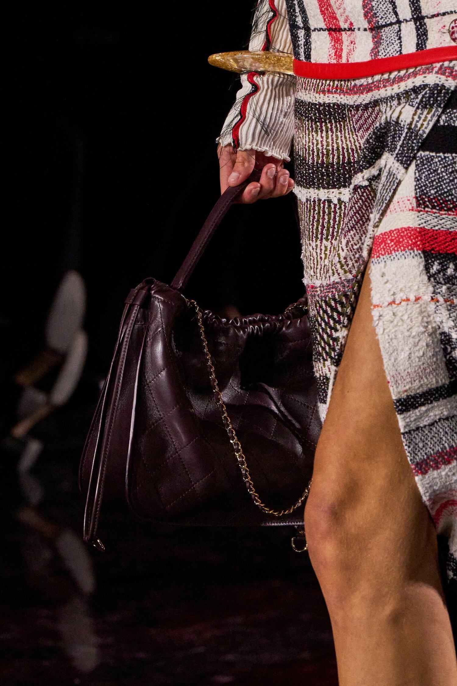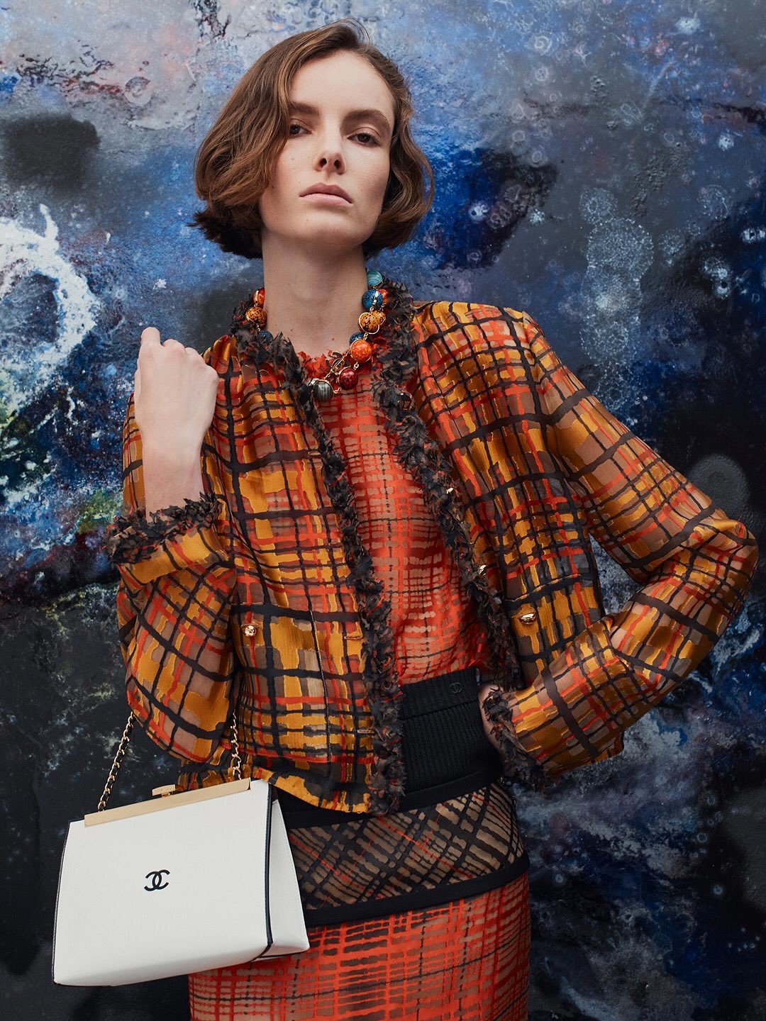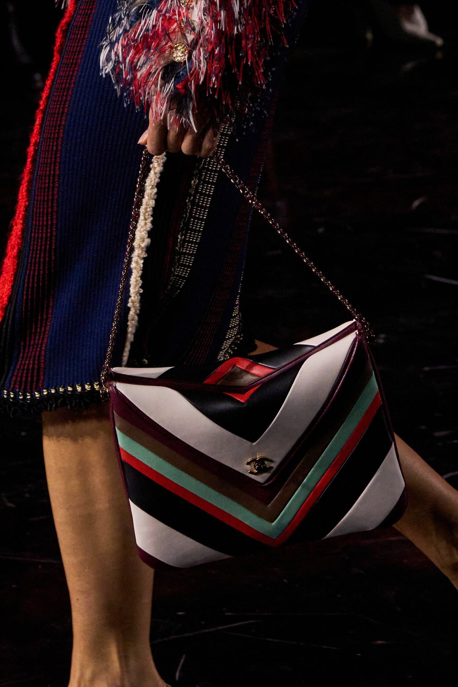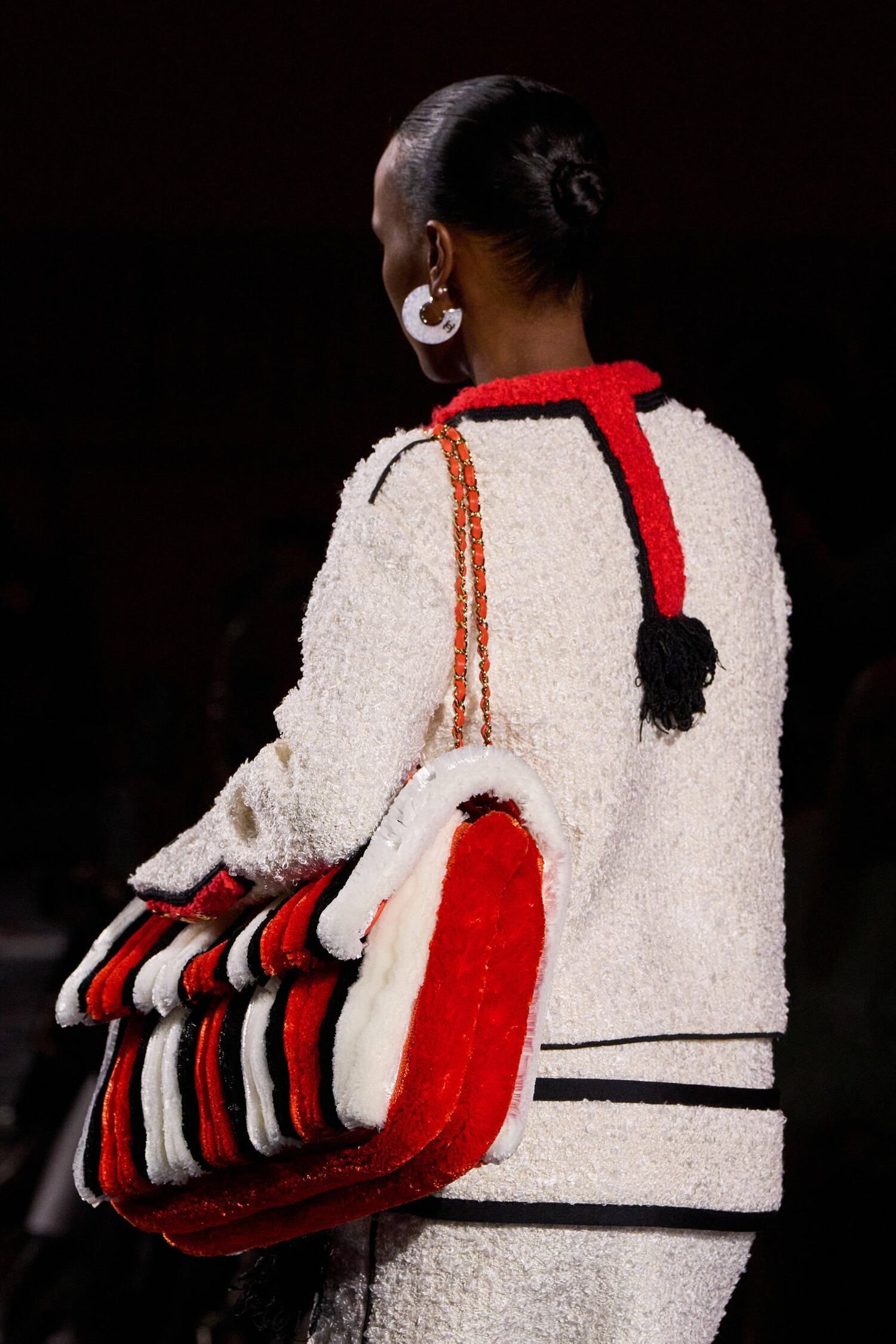 你可以看到 Matthieu Blazy 故意将双C金属徽标放置于包包的侧上方,在不对称设计中巧妙形成视觉平衡;包型比例也都被放大,保留经典菱格纹和双C徽标,更显职场女性的率性风格。