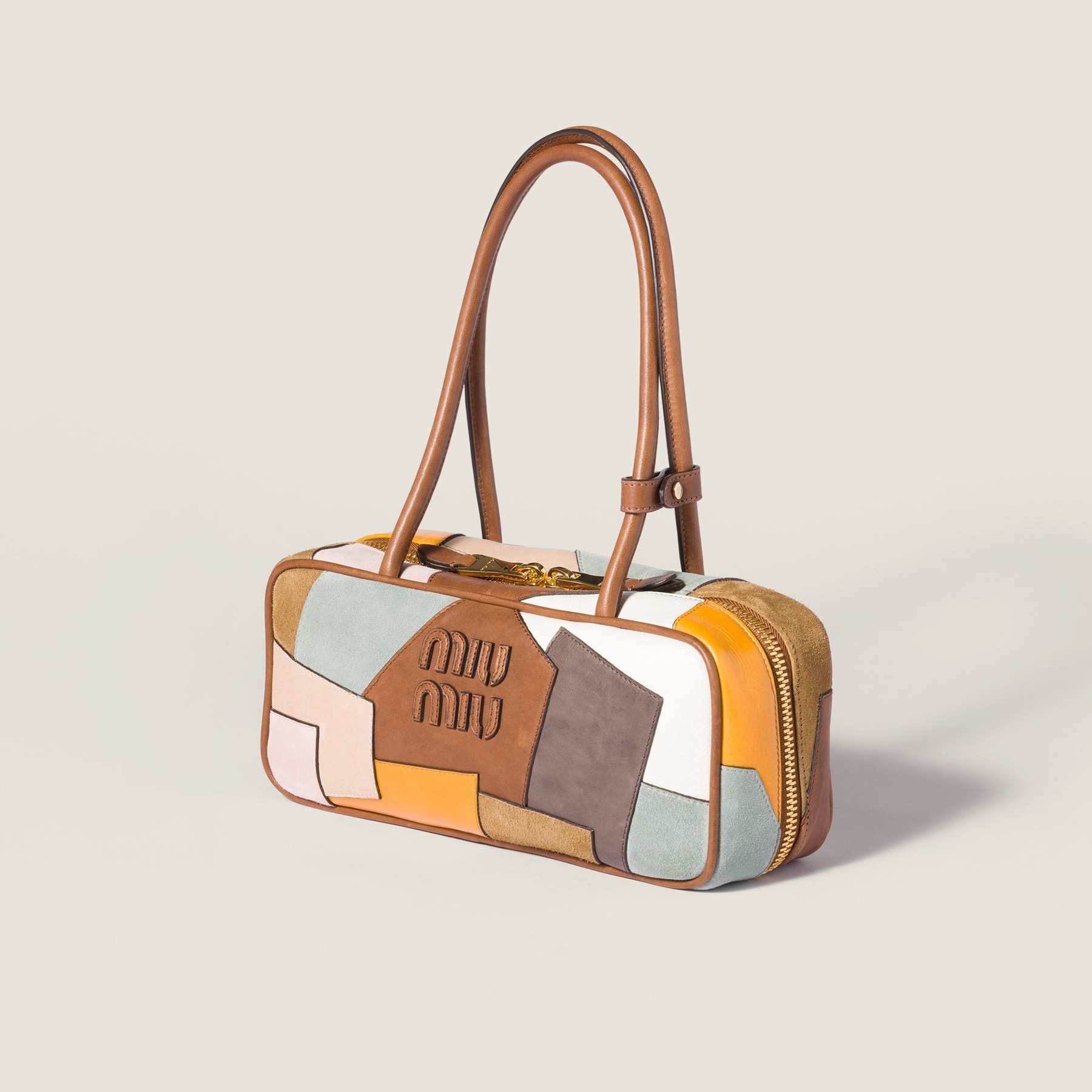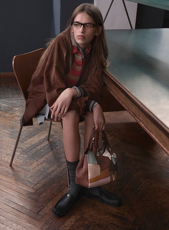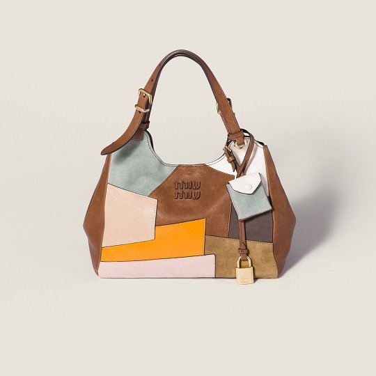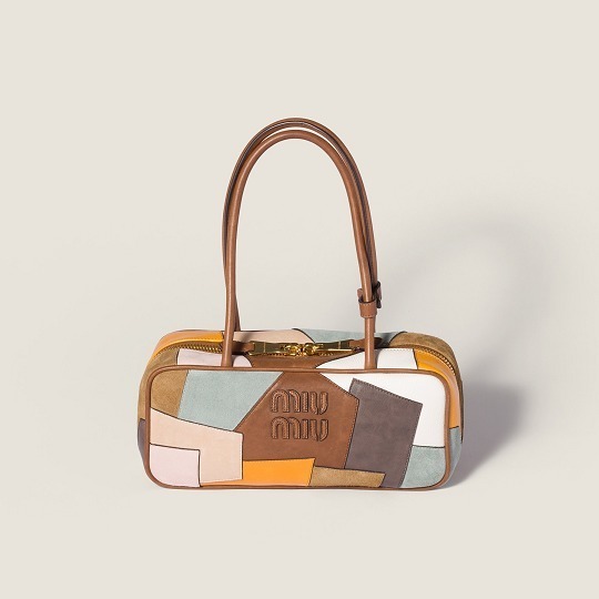 新款 Ivy 手袋和保龄球包采用皮革拼贴工艺诠释复古学院主题,包包选用小羊皮、小牛皮、绒面麂皮等不同色彩和质感的皮革拼缝而成,不规则的补丁纹路和跳脱色彩营造出古灵精怪的风格。