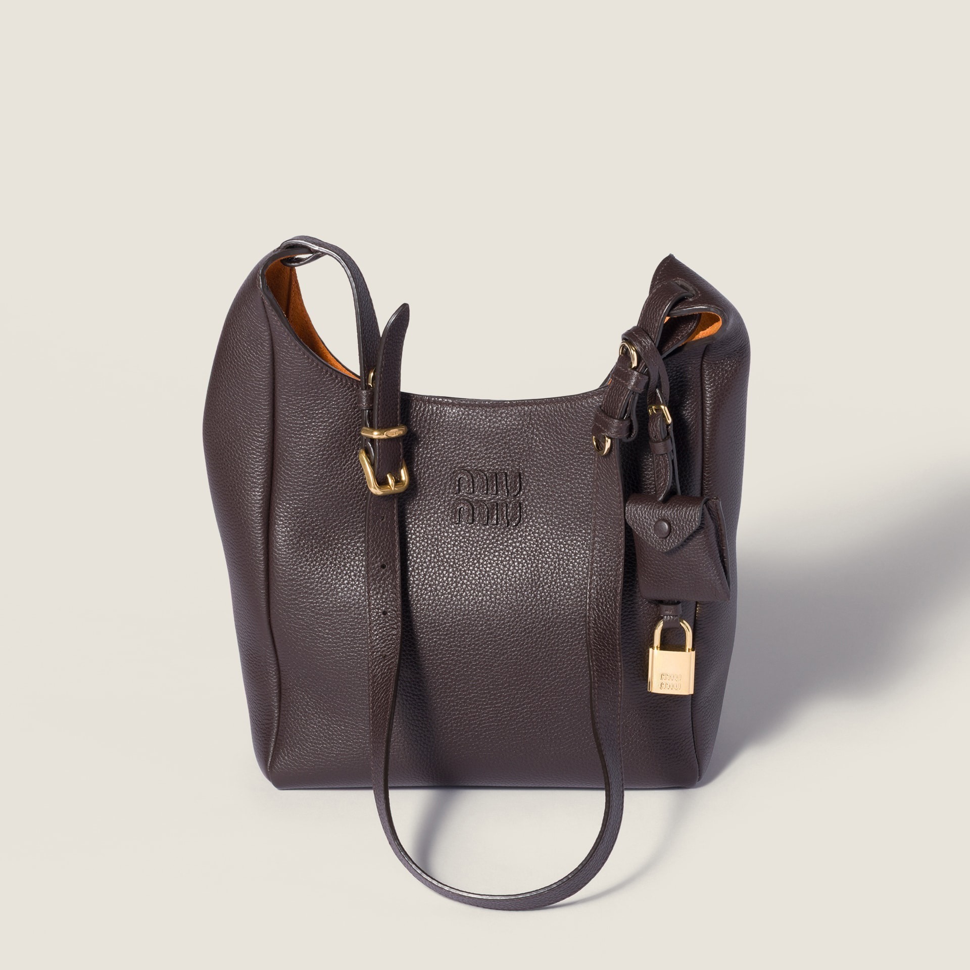 本系列还推出一组采用荔枝纹皮革制成的极简纯色手袋,里衬为温润细腻的绒面革材质,配有可拆卸的金属挂锁和钥匙包。推出保龄球包、肩背包、迷你挎包3种包型,最大亮点是对比鲜明的内外双色设计,为精简实用廓形增添惊喜。